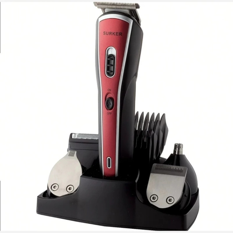 ماشین اصلاح «سورکر» (Surker) مدل «517» دارای 5 سری مختلف و باتری قابل شارژ است. این سری ها شامل خط زن T شکل، خط زن همراه شانه، تریمر کوچک، موزن گوش و بینی و شیور میشوند. خط زن T شکل مخصوص اصلاح موهای سر است و 4 شانه ی مختلف روی آن نصب میشود. به کمک این شانه ها میتوان موها را در اندازه های 3، 6، 9 و 12 میلیمتر کوتاه کرد. خط زن دوم مخصوص اصلاح موهای صورت است و یک شانه قابل تنظیم دارد. برای مرتب کردن ریش و سبیل یک خط زن کوچک وجود دارد که به کمک آن میتوان فرم دلخواه را ایجاد کرد. نکته ی جالب در طراحی دستگاه این است که میتوان طول برش هر سه تریمر را توسط دکمه ی روی بدنه در سه حالت تغییر داد. برای اصلاح از نزدیکترین فاصله با پوست هم میتوان از سری فویلی استفاده کرد و در نهایت موزن گوش و بینی این مجموعه اصلاح را کامل میکند. جنس تیغه ها از استیل ضد زنگ است. مجهز به باتری قابل شارژ است. برای شارژ کردن دستگاه میتوان آداپتور را مستقیماً به آن وصل کرد اما راه راحتتر استفاده از پایه ی شارژ است. این پایه علاوه بر این که سوکت شارژ دارد، دارای جای سری ها و شانه ها نیز است. به این ترتیب میتوان اقلام متنوع همراه دستگاه را یکجا کنار هم نگه داشت. یک عدد شانه ی آرایشگری نیز داخل جعبه قرار داده شده است. به طور خلاصه دارای 5 سری، 5 شانه، باتری قابل شارژ، پایه ی شارژ است و مجموعه ی کاملی از امکانات را برای اصلاح سر و صورت در اختیار میگذارد